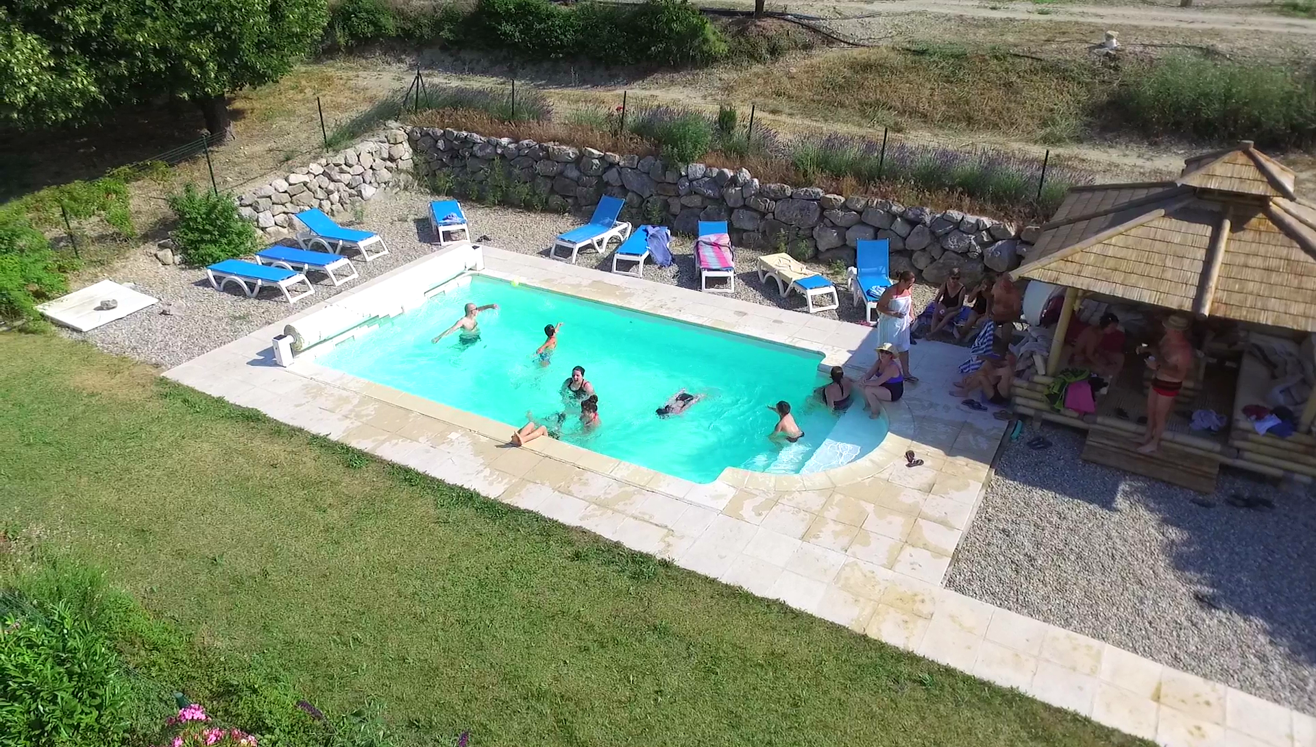 La piscine est à mise à disposition, si le temps le permet, de 10 h à 19 h 30 tous les jours et durant la durée de séjour prévue au contrat de location. Son accès est strictement réservé à notre clientèle. L'accès des enfants à la piscine s'effectue sous l'entière responsabilité des adultes encadrant le séjour. Le port du maillot est obligatoire ; les plongeons et sauts sont interdits, par mesure de sécurité et afin de ne pas gaspiller l'eau si précieuse en pleine saison estivale. Si, pour une quelconque raison, l'accès à la piscine n'était pas possible à un moment ou pour toute la durée du séjour, cette situation ne donnerait droit à aucune contrepartie financière de la part du propriétaire qui met gracieusement à disposition sa piscine privée.